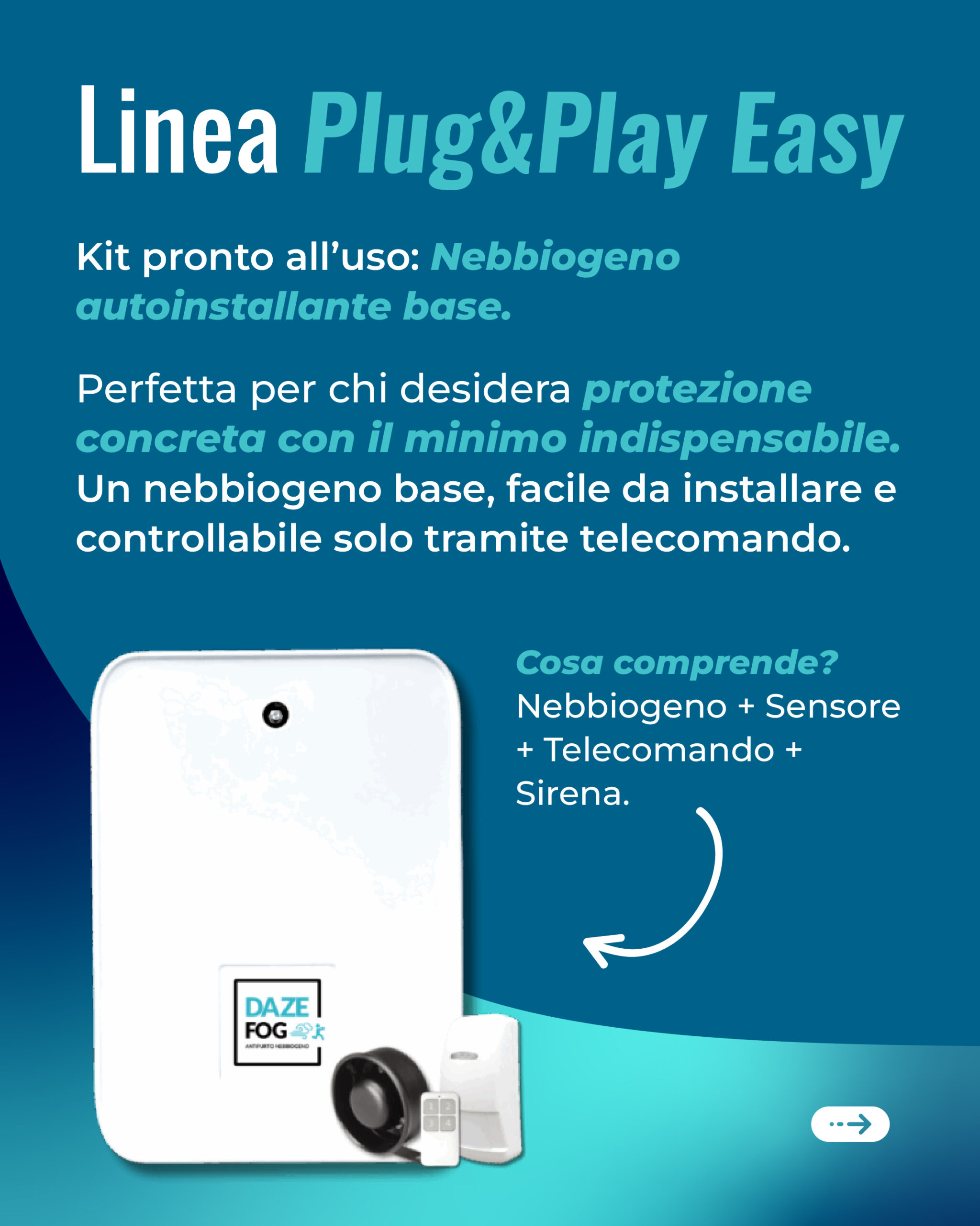 Daze è un antifurto completo di ultima generazione con nebbiogeno integrabile, pensato per garantire la massima sicurezza della propria attività o abitazione la cui mission è: